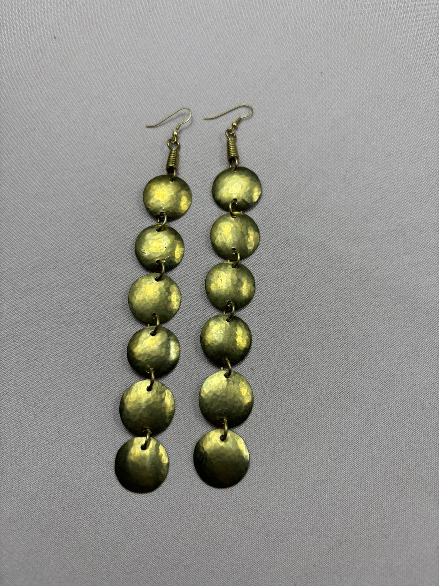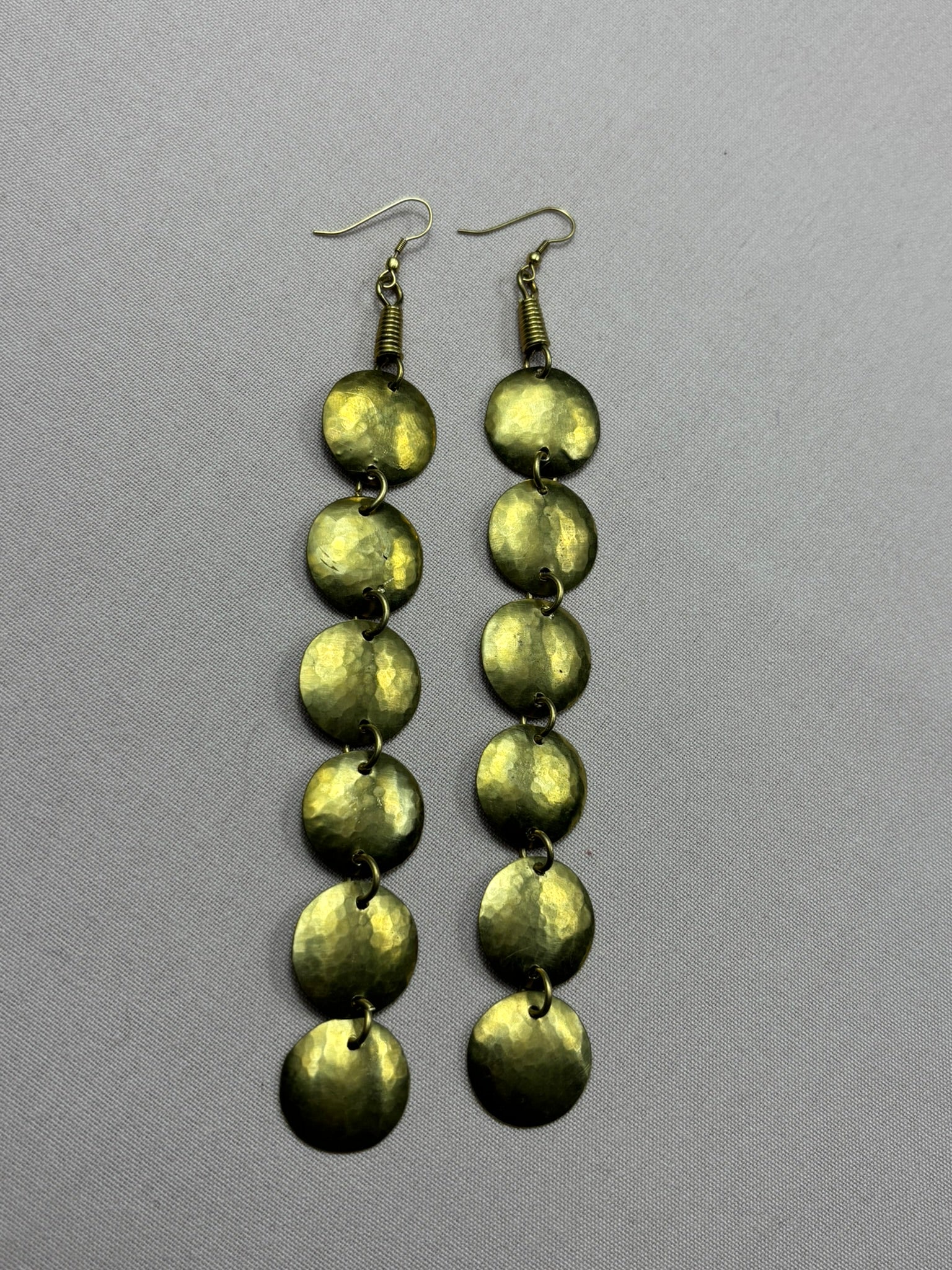 The Circulo Brass Drop Earrings are a refined expression of balance and simplicity. Handcrafted from brass, these long minimalist earrings feature six delicately linked brass circles, creating graceful movement with every step. Lightweight and comfortable.
