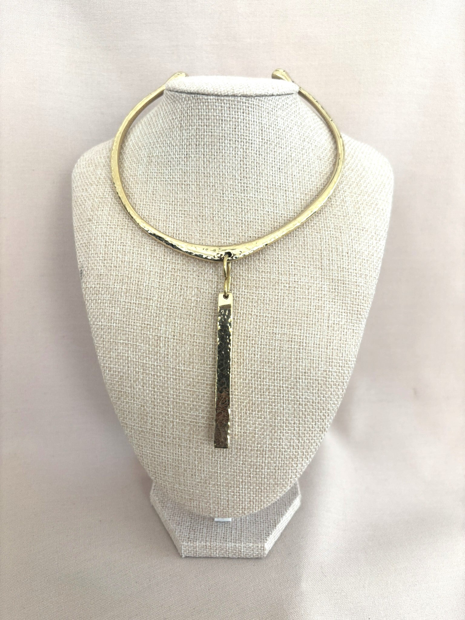Hammered Unisex Gold Choker with Drop Pendant