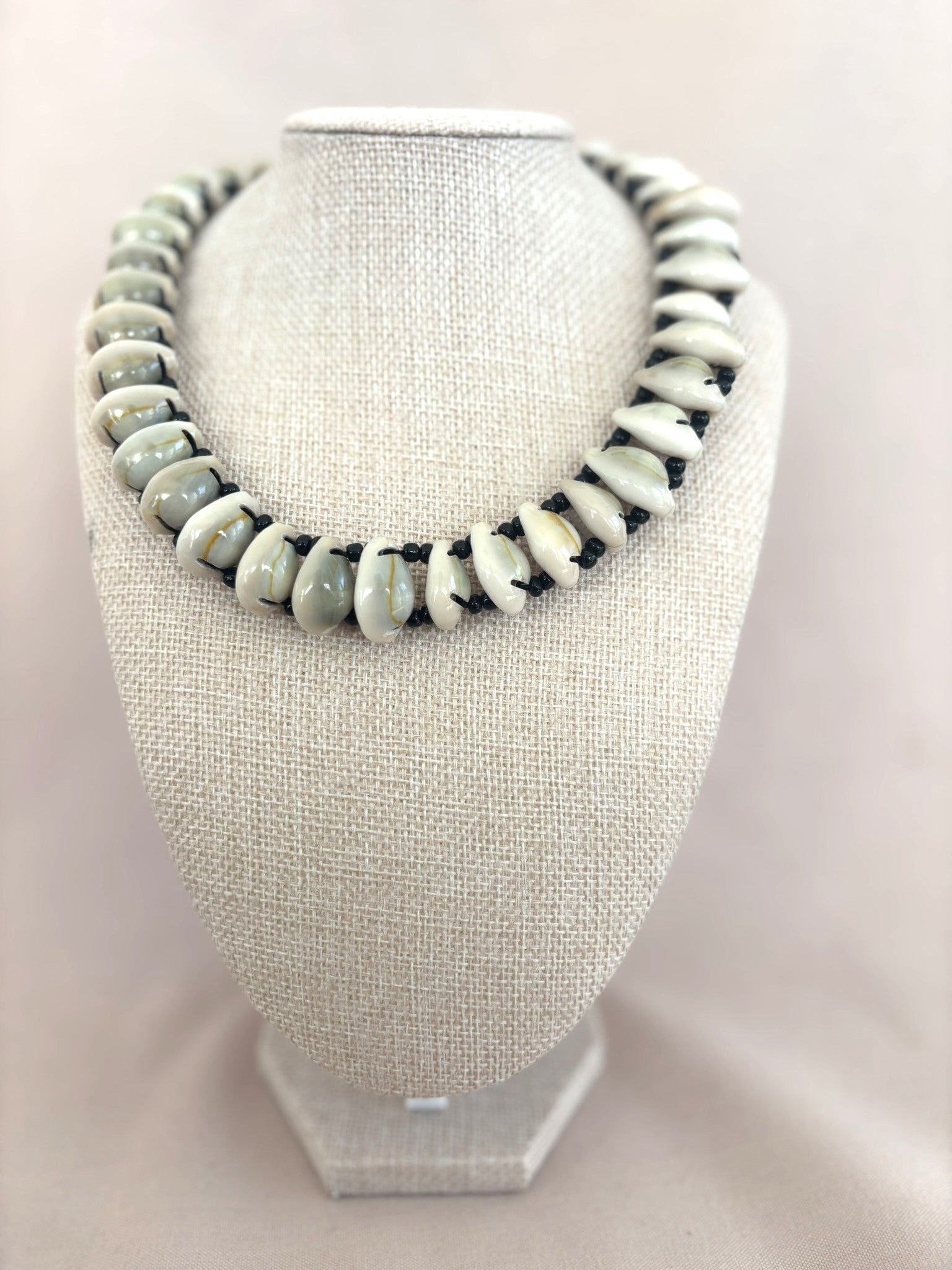 Maji Minimal Cowrie Necklace – Effortless elegance with cultural depth. This handcrafted necklace features a single row of polished cowrie shells, a timeless symbol of wealth, femininity, and spiritual protection in African tradition.