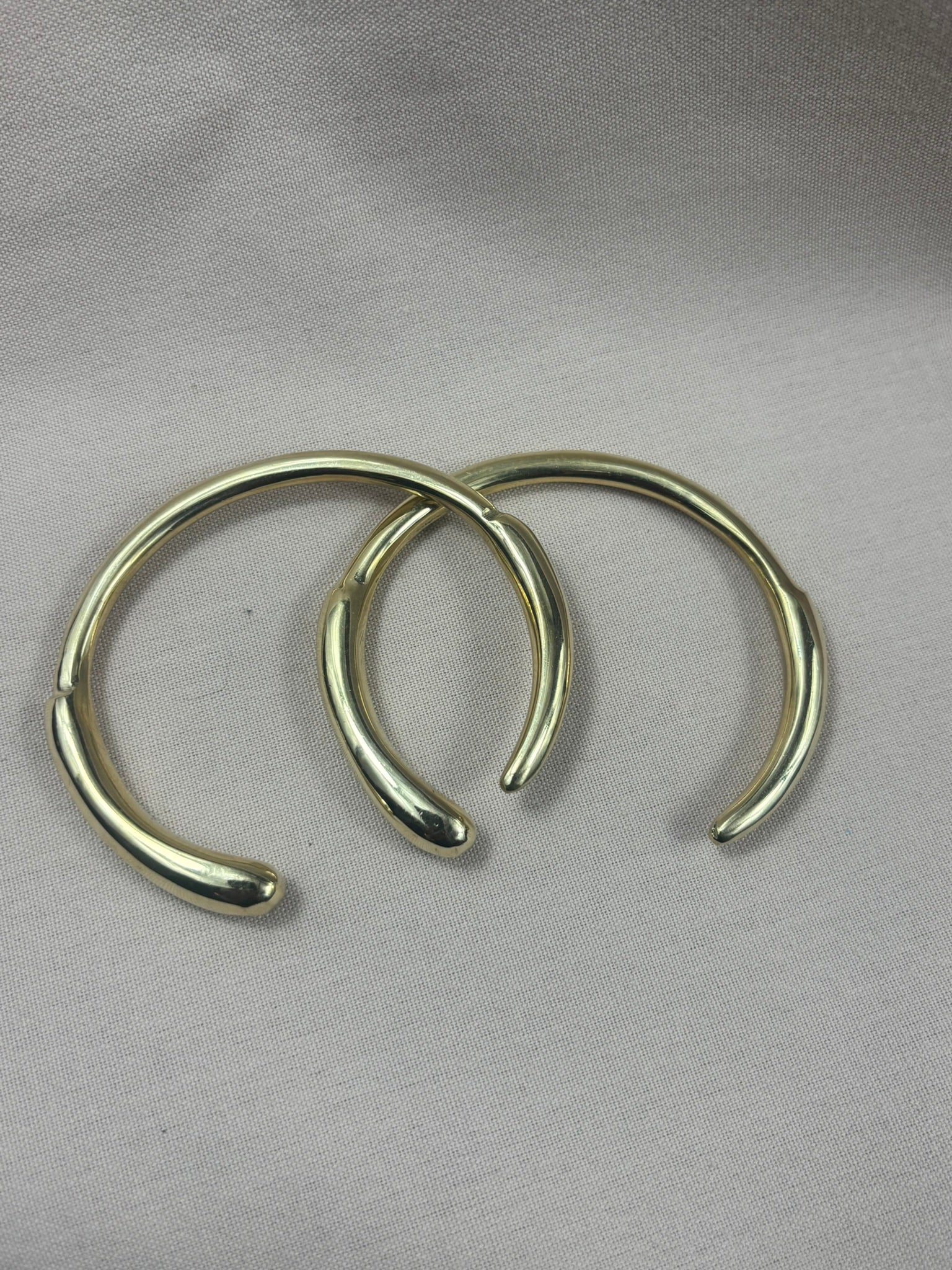 Designed for an adjustable fit, the cuff gently conforms to the wrist while maintaining its structure. For longevity, shape adjustments should be made only during the first few wears. The piece is worn by sliding it over the narrowest part of the wrist and easing it off with a subtle, fluid motion.