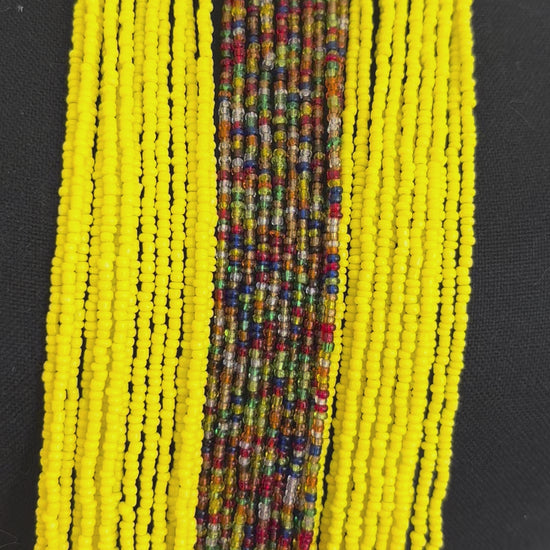 The vibrant yellow beadwork encircles the neck with confidence, while the multicolor fringe adds movement, depth, and a powerful expression of individuality. Lightweight yet striking, every detail is carefully hand-woven to create a piece that feels regal, modern, and deeply rooted in heritage.