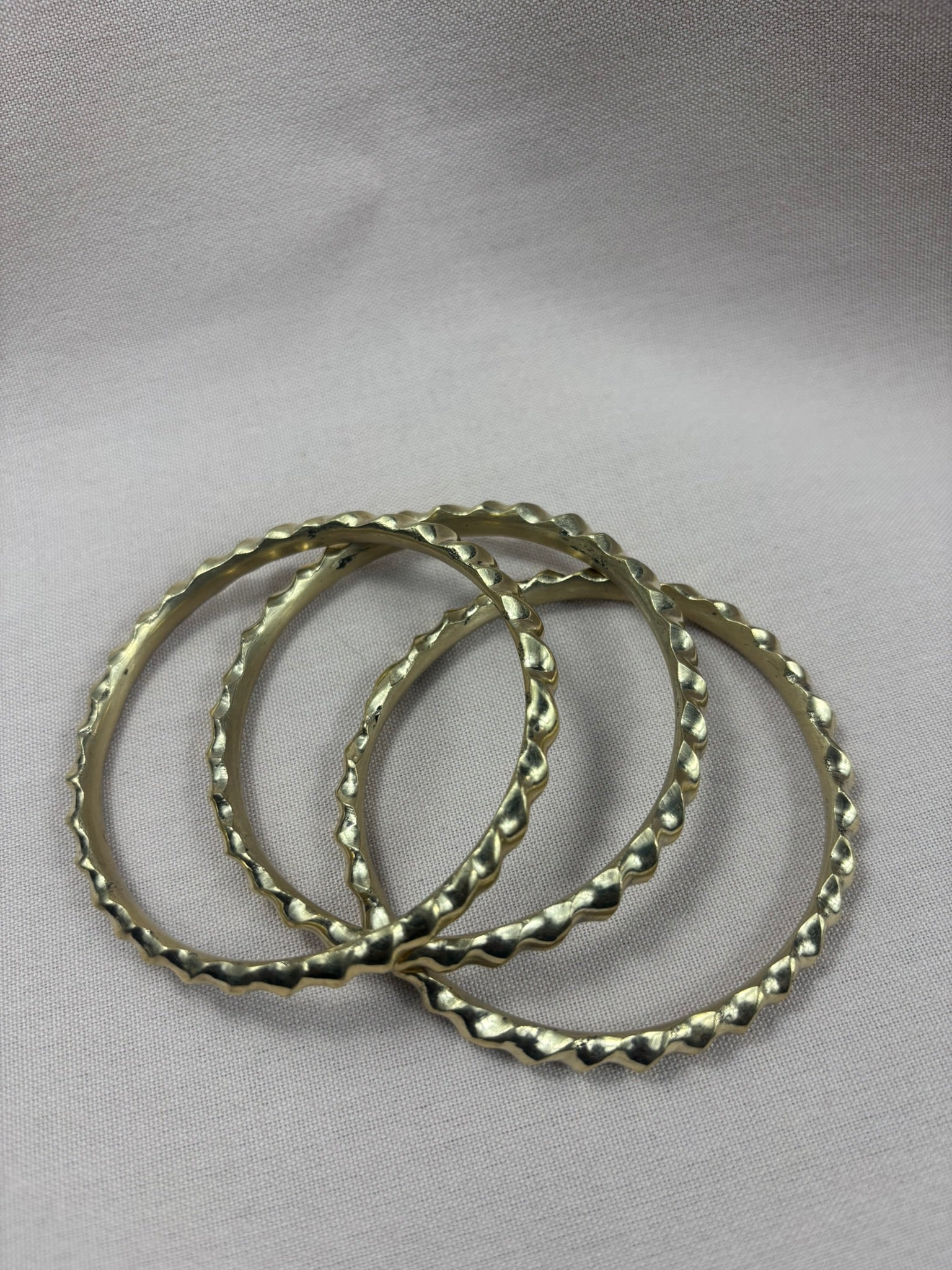 This Wavy Brass Bracelet is approximately 2.6 inches in diameter.